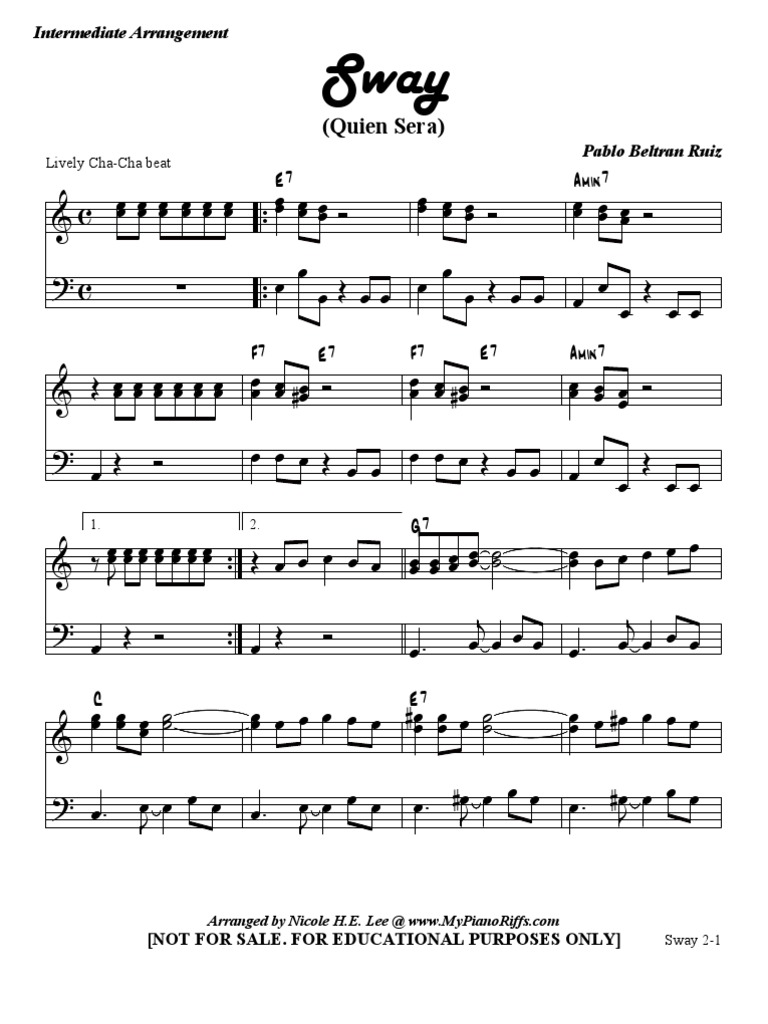 Sway Quien Sera Sheet Music Pablo Beltran Ruiz Tenor Sax Solo