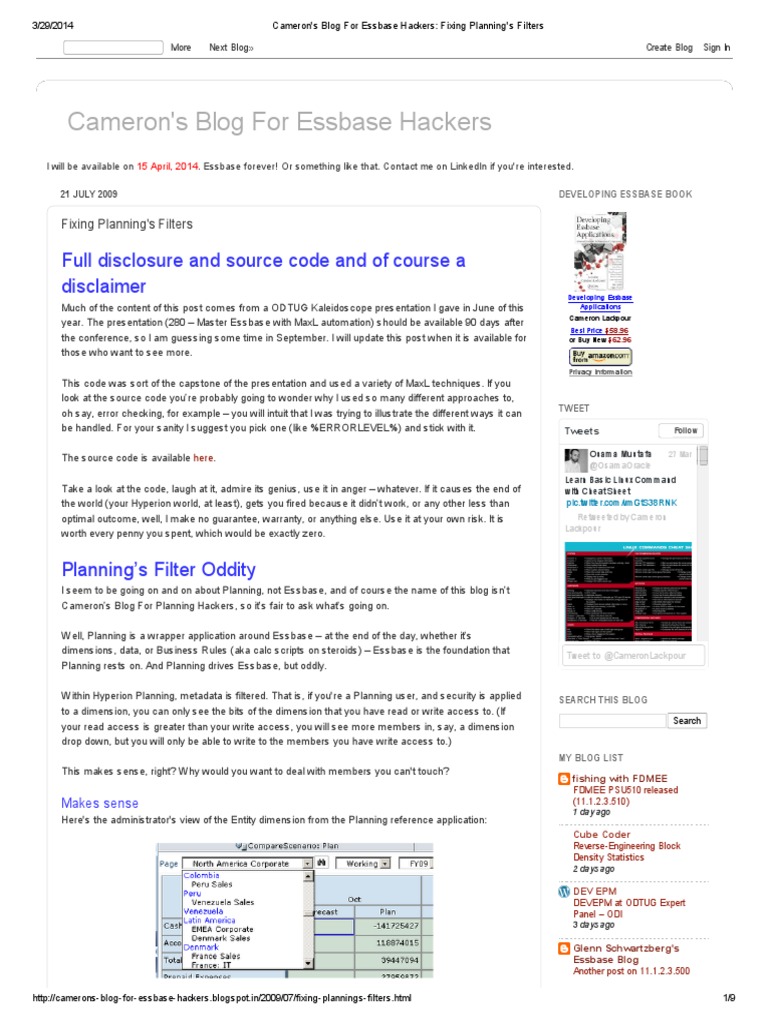 Advanced techniques for finance and it professionals provides an unparalleled investigation and explanation of essbase theory and best practices. Cloud communities have now been migrated to the oracle cloud customer connect platform and this communitys forums have been made read only. Especially look smarter th. Business users with front end tools can write data back to a server and recalculate the data on a server using calculation scriptskey functionality to support sophisticated modeling and planning applications.